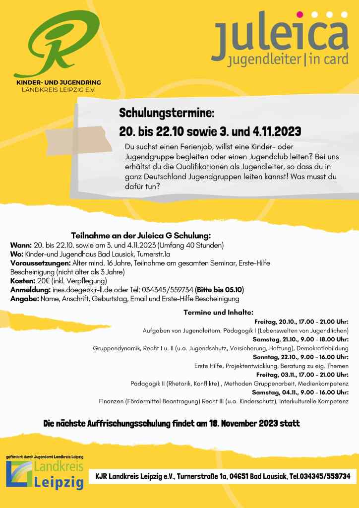 Alle weiteren Informationen zu unserer Juleica G Schulung sind hier ersichtlich.