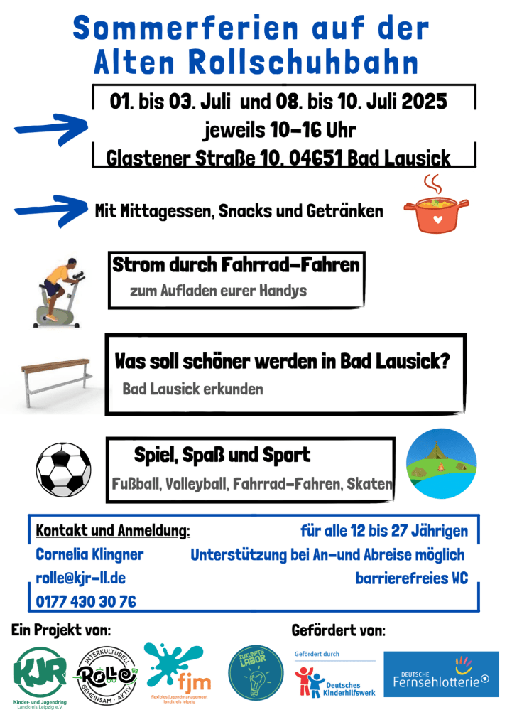 Angebot in den Sommerferien auf der ‚Alten Rollschuhbahn‚ vom 1. bis 3. Juli sowie 8. bis 10. Juli.