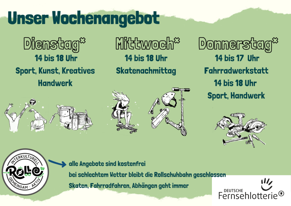 Seit 01. März 2025 ist die Alte Rollschuhbahn außerdem Standort für das inklusive Freizeit- und Bildungsprojekt „Deine Rolle-gemeinsam-aktiv-inklusiv“. Gefördert wird das Projekt von der Deutschen Fernsehlotterie. Damit werden junge Menschen ohne und mit verschiedenen Behinderungen aus dem gesamten Landkreis Leipzig angesprochen.